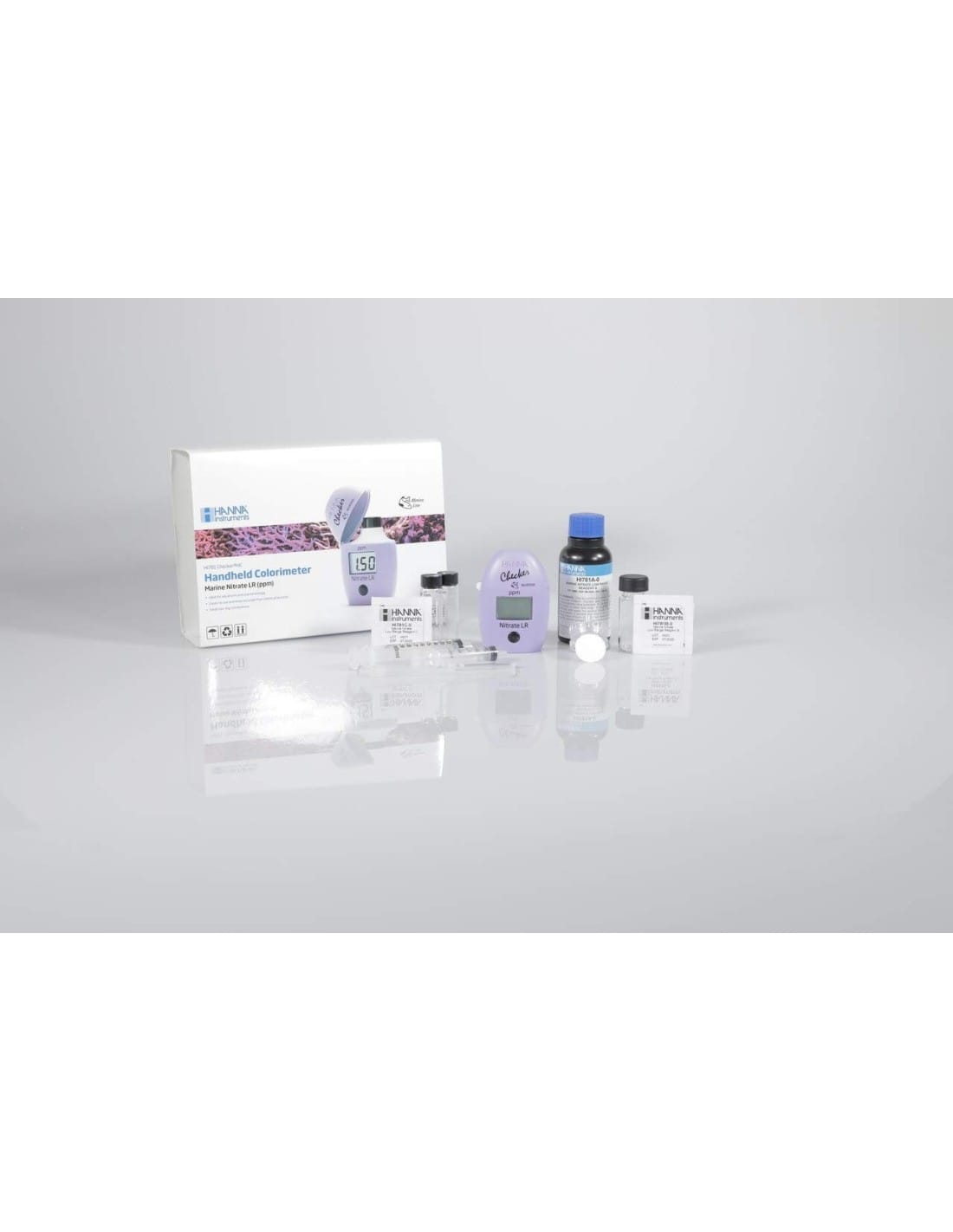 El HI781 Checker® de HANNA es un medidor digital de nitratos de rango bajo para agua marina (0,00-5,00 ppm). Preciso, sencillo y portátil, muestra el resultado directamente en pantalla y es ideal para acuarios de arrecife y aplicaciones marinas.